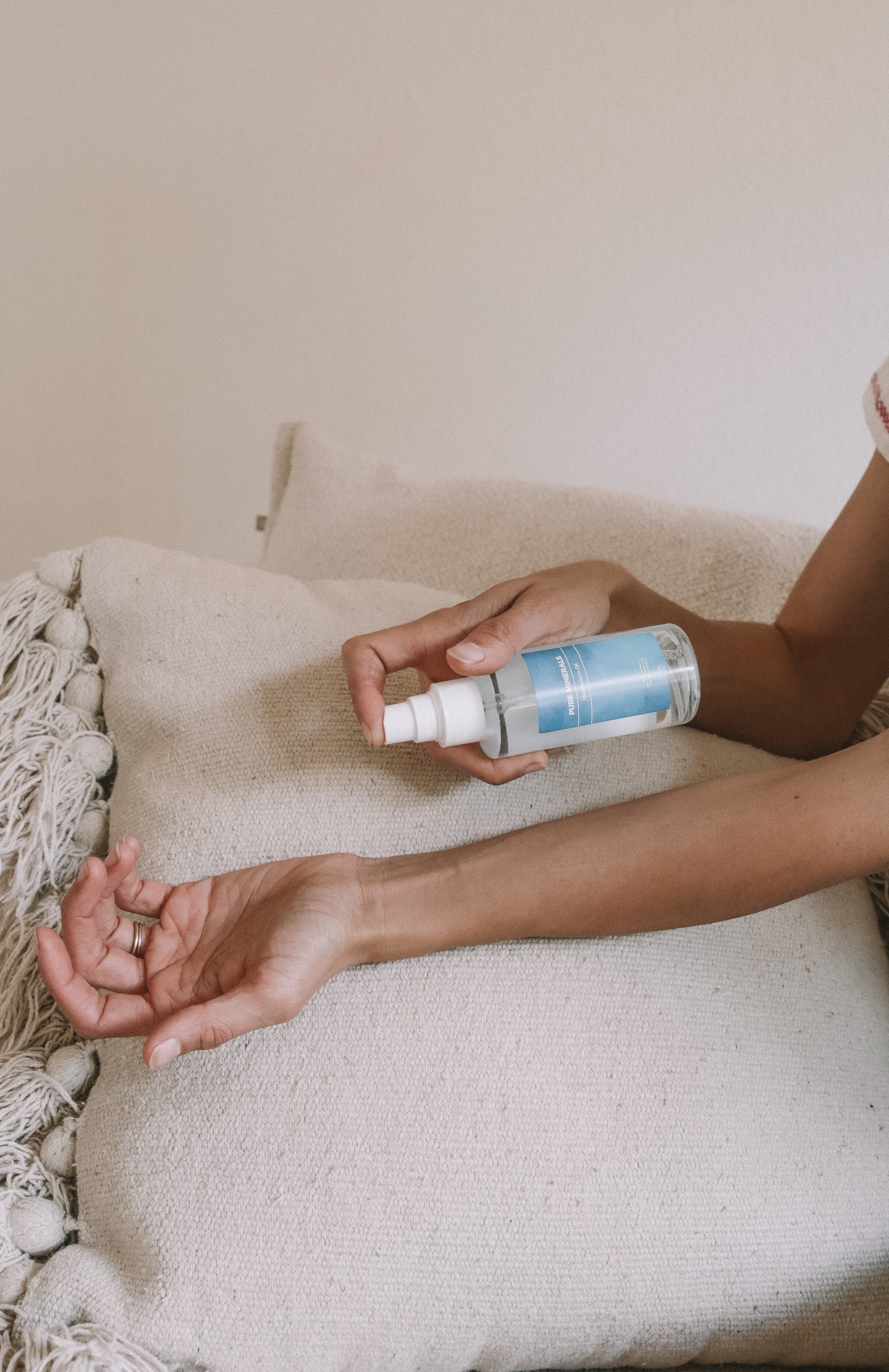 Gently rub the magnesium oil into your skin using circular motions. Let it absorb for 20-30 minutes while you relax.